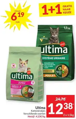 | Ultima Kattenbrokjes 1.5 kg 1+1 GRATIS | Intermarché | € 24,76 | € 12,38 | 1+1 GRATIS | 02 februari 2026 | 08 februari 2026 | |