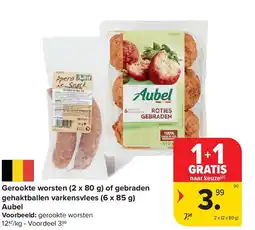 | Aubel Gerookte worsten of gebraden gehaktballen varkensvlees 80 G 1+1 GRATIS | Carrefour Market | € 7,98 | € 3,99 | 1+1 GRATIS | 08 april 2026 | 14 april 2026 | |