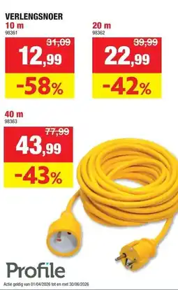 | Verlengsnoer 40 m | Hubo | € 77,99 | € 43,99 | -43% | 01 april 2026 | 12 april 2026 | |