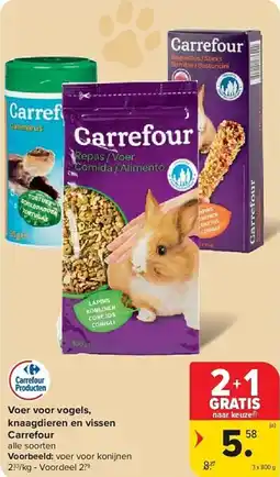 | 2 | Voer voor vogels, knaagdieren en vissen Carrefour 3 x 800 g 2+1 gratis | Carrefour | € 8,37 | € 5,58 | 2+1 gratis | 14 januari 2026 | 20 januari 2026 | Bekijk aanbieding | |