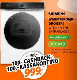 | 1 | Siemens Warmtepompdroger WQ46B2CENL Extraklasse | Expert | € 1.199,00 | € 999,00 | € 200,00 Korting | 22 december 2025 | 28 december 2025 | Bekijk aanbieding | |