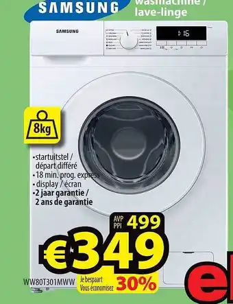 | Samsung wasmachine / lave-linge | ElectroStock | € 249,00 | € 159,00 | € 90,00 Korting | 25 januari 2023 | 31 januari 2023 | |