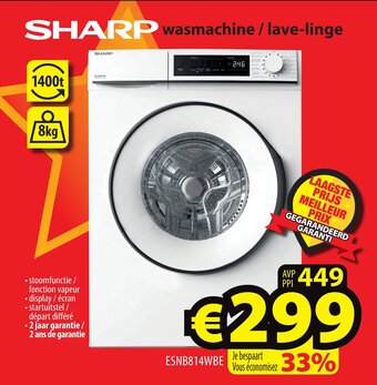 | Sharp wasmachine - lave-linge esnb814wbe | ElectroStock | € 299,00 | 24 november 2021 | 01 december 2021 | |||