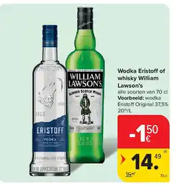 3Carrefour Market Wodka eristoff of whisky william lawson's aanbiedingWodka eristoff of whisky william lawson's 70 clCarrefour Market€ 15,99€ 14,49-1.50€28 januari 202603 februari 2026 Bekijk aanbieding