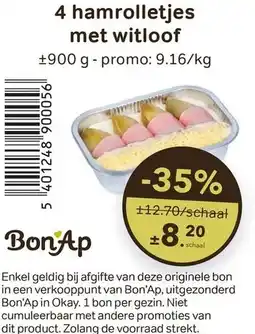 | 3 | 4 hamrolletjes met witloof 900 g | Bon Ap | € 12,70 | € 8,20 | -35% | 01 april 2026 | 28 april 2026 | Bekijk aanbieding | |