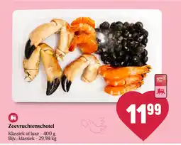 | Zeevruchtenschotel 400 g | Delhaize | € 11,99 | 12 februari 2026 | 18 februari 2026 | |||