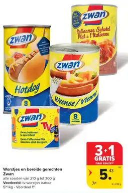 | Worsten en bereide gerechten Zwan 4 x 230 g 3+1 gratis | Carrefour Market | € 7,16 | € 5,37 | 3+1 gratis | 17 december 2025 | 25 december 2025 | |