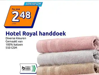 De prijs van Hotel royal handdoek kan u vinden bovenaan de pagina, waarbij ook de geldigheidsdata worden genoemd. Daarnaast is de prijs ook te vinden in de huidige Action folder of op de website van Action. U bent verzekerd van producten aan de laagste prijs bij Action als u artikelen in promotie koopt.