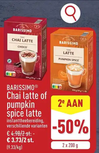 Barissimo chai latte of pumpkin spice latte korting bij ALDI