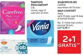 O.B. Tampons procomfort, Carefree Inlegkruisjes of Vania maxi confort 2+1 GRATIS