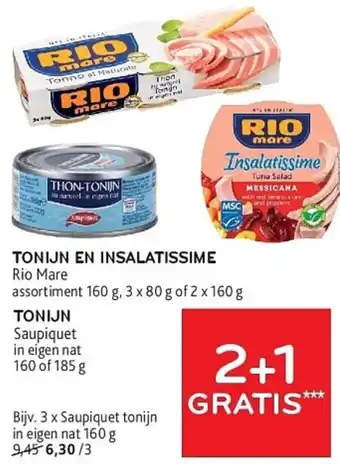 Tonijn en insalatissime Rio Mare of Tonijn Saupiquet 160 g 2+1 GRATIS
