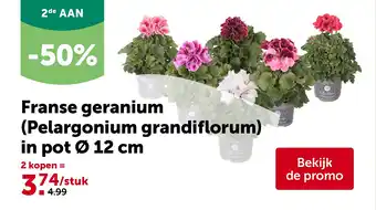 Nu in promo bij AVEVE: Franse geranium (Pelargonium grandiflorum) in pot Ø 12 cm✅ Deze aanbieding is geldig van 8-04 t/m 19-04.