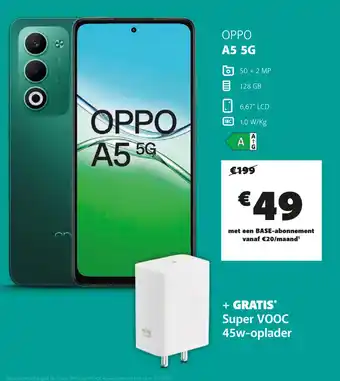De Oppo A5 5G is momenteel in aanbieding bij Base. Op deze pagina vindt u alle informatie over de actuele prijs, promotievoorwaarden en geldigheidsperiode. U kan ook andere acties en vergelijkbare aanbiedingen bekijken, zodat u steeds de voordeligste keuze maakt. De promotie loopt van 08-01-2026 tot en met 01-02-2026. Is de actie afgelopen? Geen probleem – alternatieve Oppo A5 5G promo’s blijven beschikbaar. U kan de productcategorie volgen om automatisch verwittigd te worden wanneer Oppo A5 5G opnieuw in aanbieding komt.Veelgestelde vragen over Oppo A5 5G