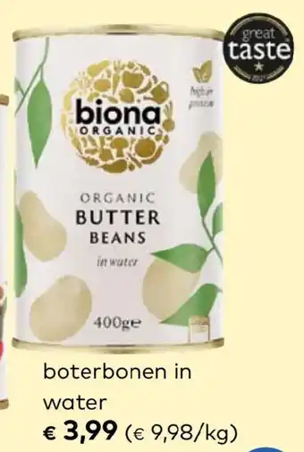 Biona Boterbonen in Water aanbieding bij Bio Planet