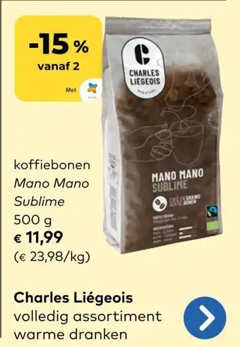 Charles Liégeois koffiebonen Mano Mano Sublime korting bij Bio Planet