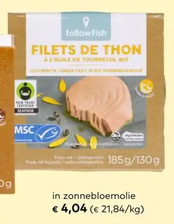 Followfish in Zonnebloemolie aanbieding bij Bio Planet