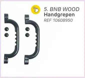 Brico heeft een ruim assortiment naast de BNB Wood Handgrepen, houd elke week de Brico folder in de gaten om de beste aanbiedingen en promoties te vinden. Naast BNB Wood Handgrepen in promotie kan u ook volgende aanbiedingen vinden: BNB Wood Klimstenen, BNB Wood Trapeze & BnB Wood Sanna speeltoestel.