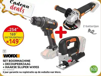 Work Set Boormachine + Decoupeerzaag + Haakse Slijper WX+ HAAKSE SLIJPER WX955 korting bij Brico