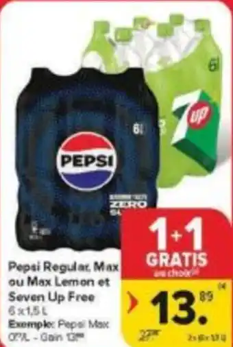 Verwachte Pepsi Regular, Max ou Max Lemon et Seven Up Free aanbieding bij Carrefour Market