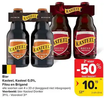 De prijs van Bier Kasteel, Kasteel 0,0%, Filou en Brigand kan u vinden bovenaan de pagina, waarbij ook de geldigheidsdata worden genoemd. Daarnaast is de prijs ook te vinden in de huidige Carrefour folder of op de website van Carrefour. U bent verzekerd van producten aan de laagste prijs bij Carrefour als u artikelen in promotie koopt.