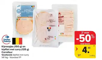 Kipreepjes (150 g) en kipfi let met curry (125 g) Carrefour