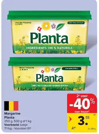 Carrefour heeft een ruim assortiment naast de Margarine Planta, houd elke week de Carrefour folder in de gaten om de beste aanbiedingen en promoties te vinden. Naast Margarine Planta in promotie kan u ook volgende aanbiedingen vinden: PLANTA margarine, Margarines Planta & Planta classic.