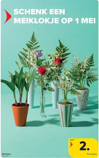 Carrefour heeft een ruim assortiment naast de Meiklokjes, houd elke week de Carrefour folder in de gaten om de beste aanbiedingen en promoties te vinden. Naast Meiklokjes in promotie kan u ook volgende aanbiedingen vinden: Meiklokjes, Meiklokjes in mandalavaas of potten met motieven of Meiklokjes in pot & Meiklokjes in vaas Solino.