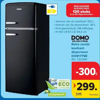 Verwachte Retro combi koelkastdiepvriezer DO91775R aanbieding bij Carrefour