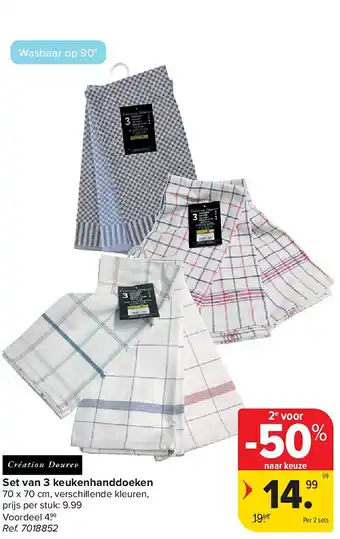 Set van 3 keukenhanddoeken korting bij Carrefour