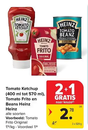 Verwachte Tomato Ketchup (400 ml tot 570 ml), Tomato Frito en Beans Heinz Heinz aanbieding bij Carrefour