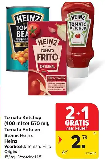Tomato Ketchup (400 ml tot 570 ml), Tomato Frito en Beans Heinz Heinz aanbieding bij Carrefour