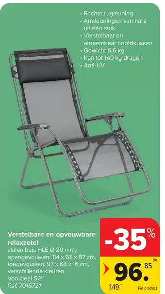 Verstelbare en opvouwbare relaxzetel aanbieding bij Carrefour
