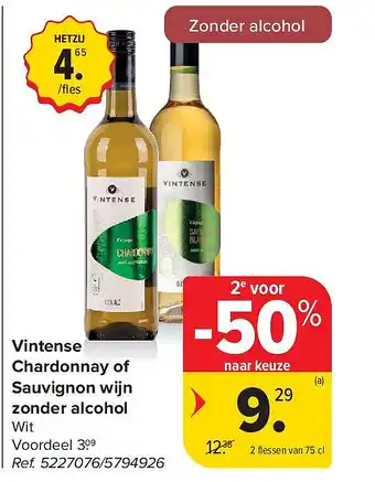 Vintense Chardonnay of Sauvignon wijn zonder alcohol korting bij Carrefour