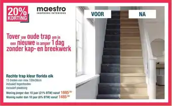 Cevo heeft een ruim assortiment naast de Rechte trap kleur florida eik, houd elke week de Cevo folder in de gaten om de beste aanbiedingen en promoties te vinden. Naast Rechte trap kleur florida eik in promotie kan u ook volgende aanbiedingen vinden: Traprenovatie trap, Rechte kinderjoggingbroek kakigroen & V33 Verf vloer & trap.