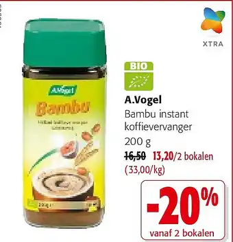Colruyt heeft een ruim assortiment naast de A.Vogel, houd elke week de Colruyt folder in de gaten om de beste aanbiedingen en promoties te vinden. Naast A.Vogel in promotie kan u ook volgende aanbiedingen vinden: A.Vogel, A.Vogel Echinacea 75 g & A.Vogel Bambu instant koffievervanger.