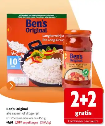 Colruyt heeft een ruim assortiment naast de Ben's Original, houd elke week de Colruyt folder in de gaten om de beste aanbiedingen en promoties te vinden. Naast Ben's Original in promotie kan u ook volgende aanbiedingen vinden: Ben's Original, BEN’S ORIGINAL langkorrelrijst 1 kg & Ben's Original Sauzen of rijst.