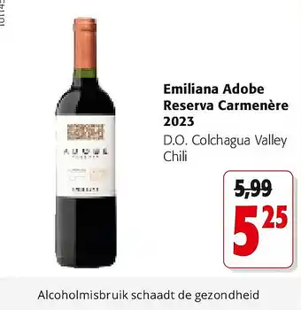 Nu in promo bij Colruyt: Emiliana Adobe Reserva Carmenère 2023✅ Deze aanbieding is geldig van 28-01 t/m 10-02.