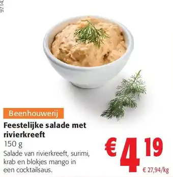 Nu in promo bij Colruyt: Feestelijke salade met rivierkreeft 150 g✅ Deze aanbieding is geldig van 17-12 t/m 31-12.