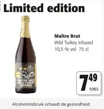 Colruyt heeft een ruim assortiment naast de Maître Brut, houd elke week de Colruyt folder in de gaten om de beste aanbiedingen en promoties te vinden. Naast Maître Brut in promotie kan u ook volgende aanbiedingen vinden: Maître Brut Wild Turkey Infused 10,5 % vol, Maître Brut Wild Turkey Infused 10,5 % vol 75 cl & Maître Brut Wild Turkey Infused 10,5 % vol 75 cl.
