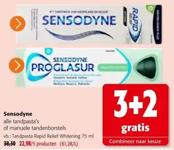 Deze promotie is bij diverse winkels in de aanbieding, bekijk alle producten om te zien welke Sensodyne het goedkoopst is.Als u wilt weten of dit product meer korting heeft in een andere winkel kan u vergelijken onder de categorie 'Supermarkt'. Wellicht vindt u deze aanbiedingen ook interessant: Sensodyne tandpasta, Sensodyne MultiCare tandpasta & Sensodyne Deep clean tandenborstel.
