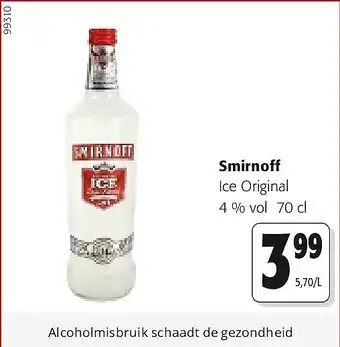Nu in promo bij Colruyt: Smirnoff Ice Original 4 % vol 70 cl✅ Deze aanbieding is geldig van 11-03 t/m 24-03.