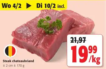 Steak Chateaubriand korting bij Colruyt