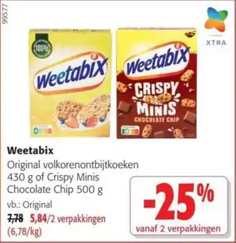 Colruyt heeft een ruim assortiment naast de Weetabix, houd elke week de Colruyt folder in de gaten om de beste aanbiedingen en promoties te vinden. Naast Weetabix in promotie kan u ook volgende aanbiedingen vinden: Weetabix original, Weetabix & aanbieding 3.