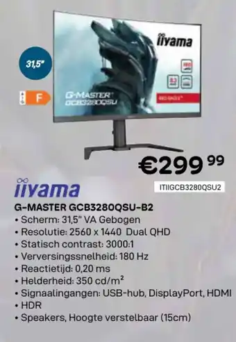 Nu in promo bij CompuDeals: Iiyama G-master GCB3280QSU-B2✅ Deze aanbieding is geldig van 1-03 t/m 31-03.