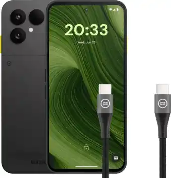 Nu in promo bij Coolblue: Fairphone 6 256GB Zwart 5G + BlueBuilt Usb C naar Usb C Kabel 1,5m Nylon Zwart✅ Deze aanbieding is geldig van 29-10 t/m 23-12.