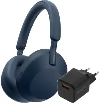 Sony WH-1000XM5 Blauw + BlueBuilt Quick Charge Oplader met Usb A Poort 18W Zwart promo en online acties bij Coolblue