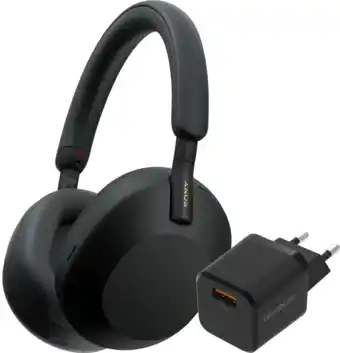 Nu in promo bij Coolblue: Sony WH-1000XM5 Zwart + BlueBuilt Quick Charge Oplader met Usb A Poort 18W Zwart✅ Deze aanbieding is geldig van 1-08 t/m 15-01.