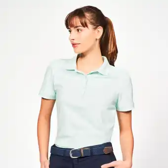 Nu in promo bij Decathlon: Golfpolo katoen polyester korte mouwen dames MW500 lichtgroen✅ Deze aanbieding is geldig van 3-01 t/m 1-02.