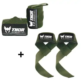 Nu in promo bij Decathlon: Lifting Straps & Wrist Wraps 60cm (Extra Sterk) - Combinatie Bundel - Army Groen✅ Deze aanbieding is geldig van 10-12 t/m 1-02.