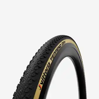 Nu in promo bij Decathlon: Vouwband voor gravel Terreno Dry 700x38 beige zijwanden✅ Deze aanbieding is geldig van 7-01 t/m 8-03.